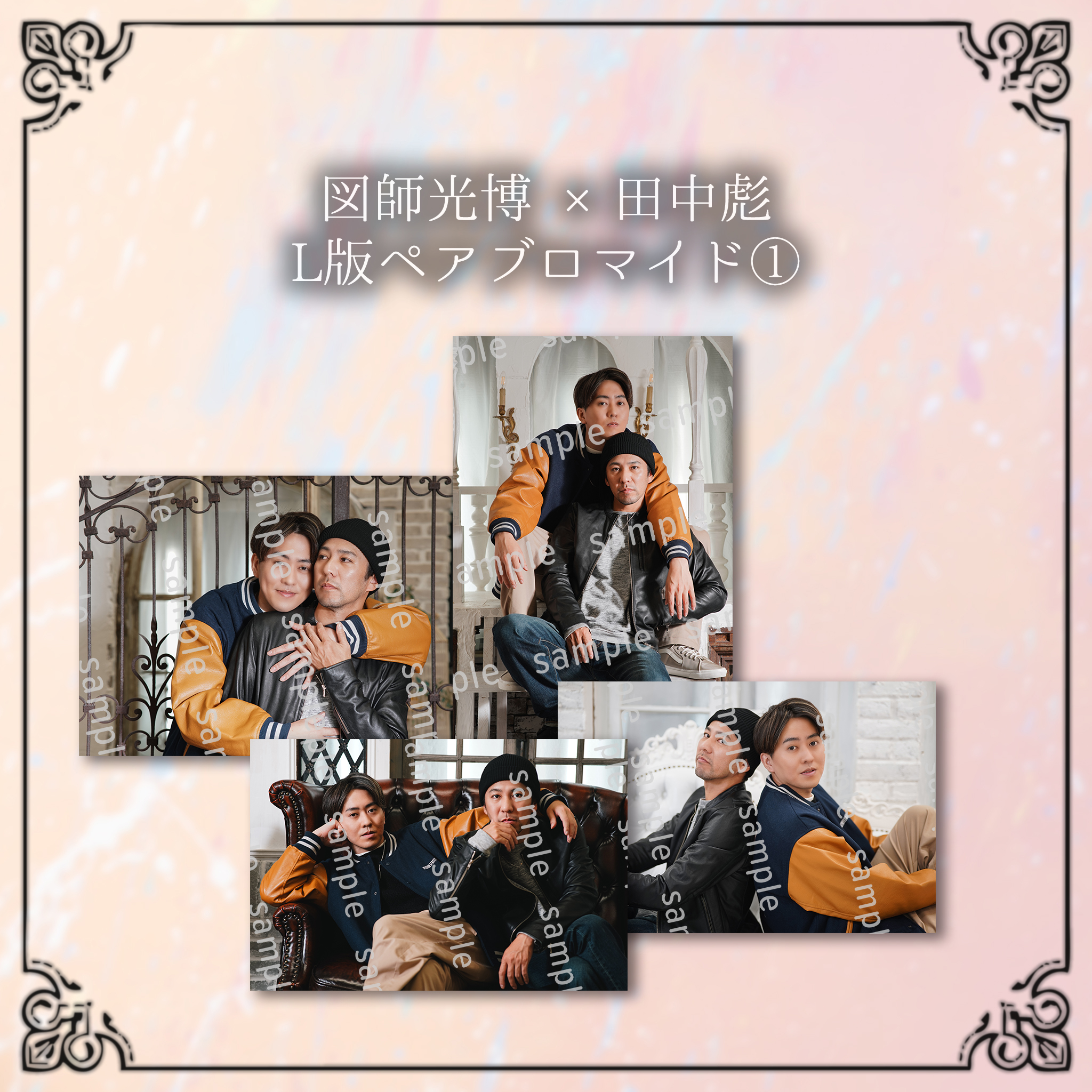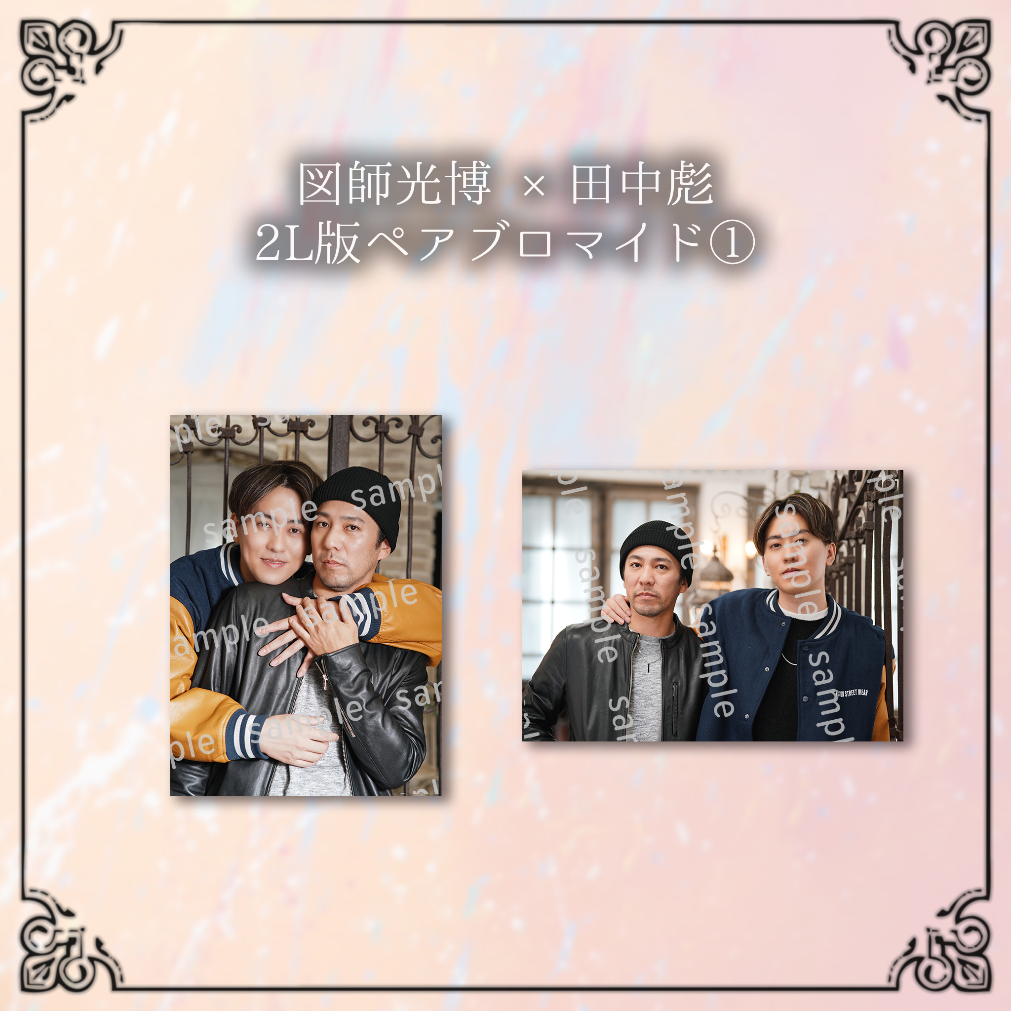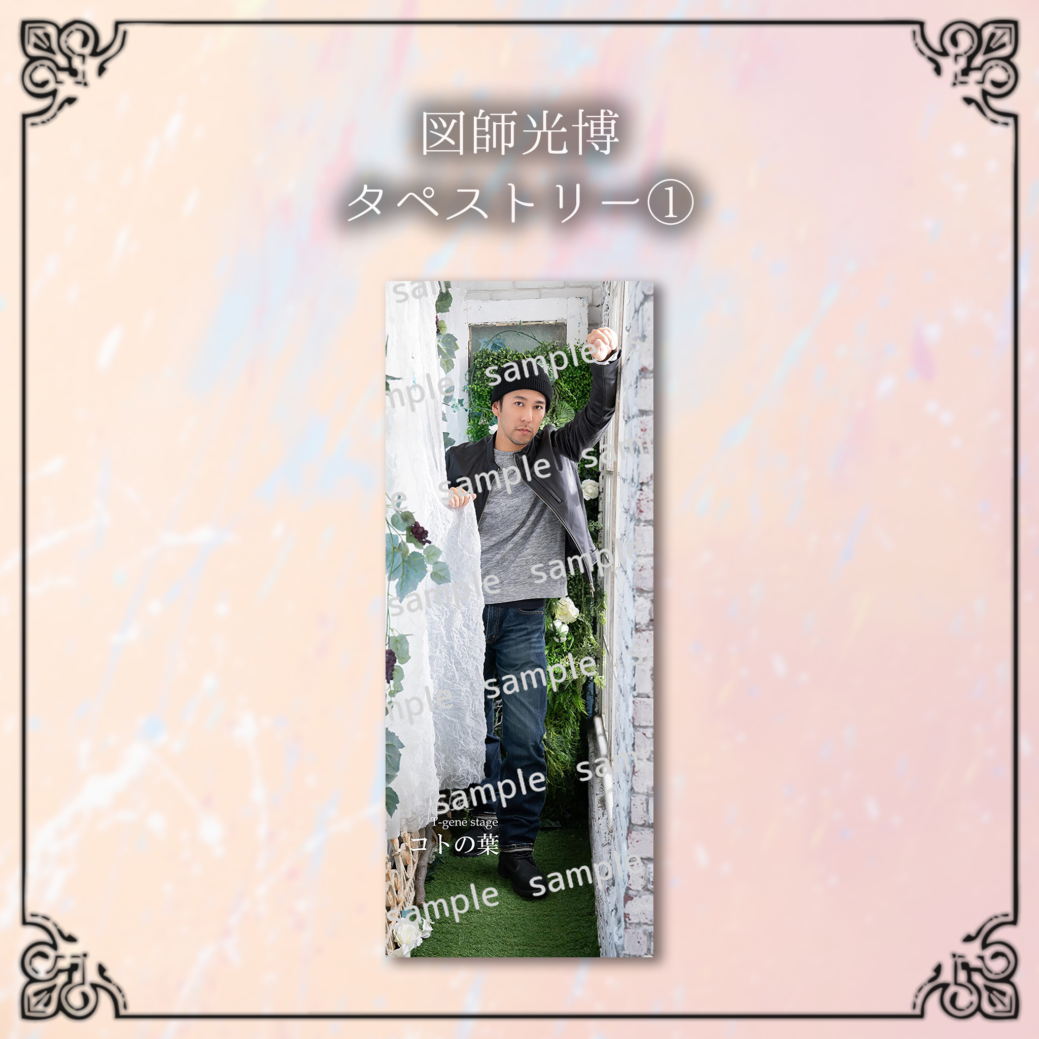 ※デザインサンプルはイメージの為、色合い等実物とは異なって参りますこと、予めご了承下さい。 商品によってはトリミング等の加工をして作成致しますので併せてご了承下さい。 下記項目を開いてデザインサンプルをご確認ください。 ▼タペストリー ▼アクリルキーホルダー ▼アクリルスタンド ▼クリアファイル ▼クリアフレーム ▼チケットホルダー ▼うちわ ▼L版ブロマイド ▼2L版ブロマイド ▼ペアタペストリー ▼ペアL版ブロマイド ▼ペア2L版ブロマイド