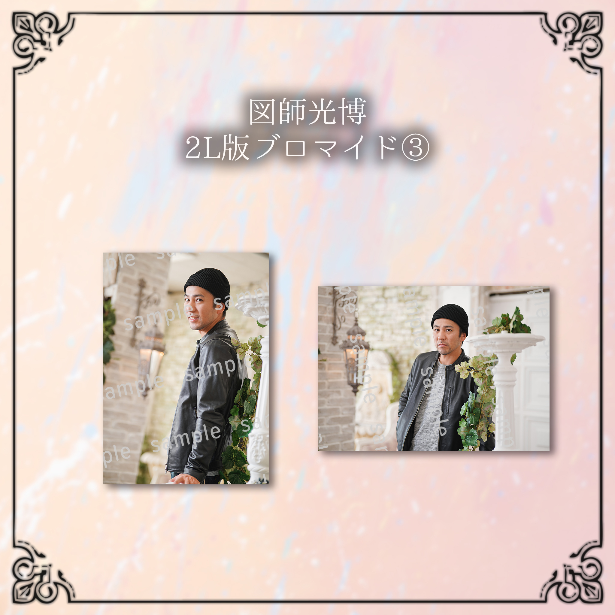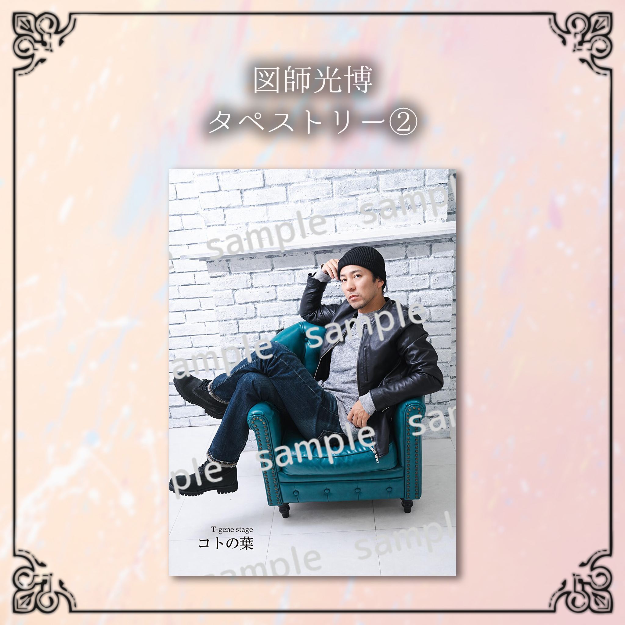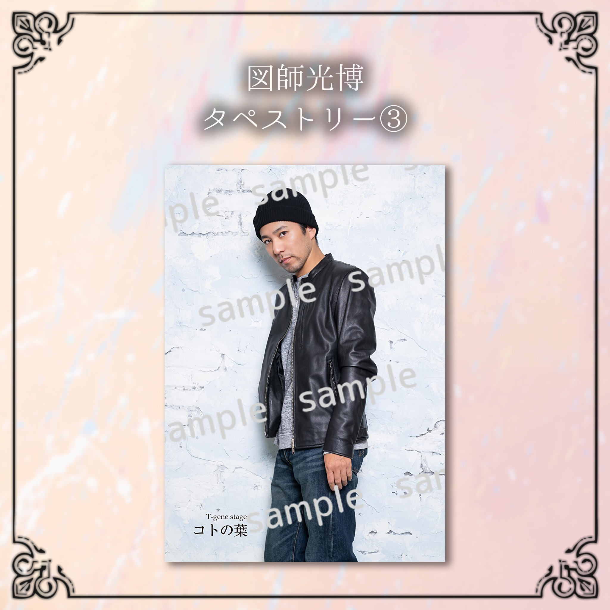 ※デザインサンプルはイメージの為、色合い等実物とは異なって参りますこと、予めご了承下さい。 商品によってはトリミング等の加工をして作成致しますので併せてご了承下さい。 下記項目を開いてデザインサンプルをご確認ください。 ▼タペストリー ▼アクリルキーホルダー ▼アクリルスタンド ▼クリアファイル ▼クリアフレーム ▼チケットホルダー ▼うちわ ▼L版ブロマイド ▼2L版ブロマイド ▼ペアタペストリー ▼ペアL版ブロマイド ▼ペア2L版ブロマイド